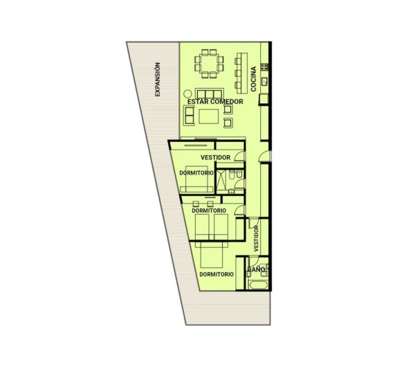 Las medidas consignadas en el presente Plano son aproximadas y han sido volcadas sólo con fines ilustrativos. Las medidas, superficies y proporciones definitivas serán las que resulten de los respectivos Planos definitivos que oportunamente sean aprobados y registrados ante la autoridad competente, reservándose por lo tanto la empresa el derecho a modificarlos sin necesidad de notificación previa. El equipamiento, ornamentación y accesorios de las unidades serán por cuenta exclusica de los compradores.